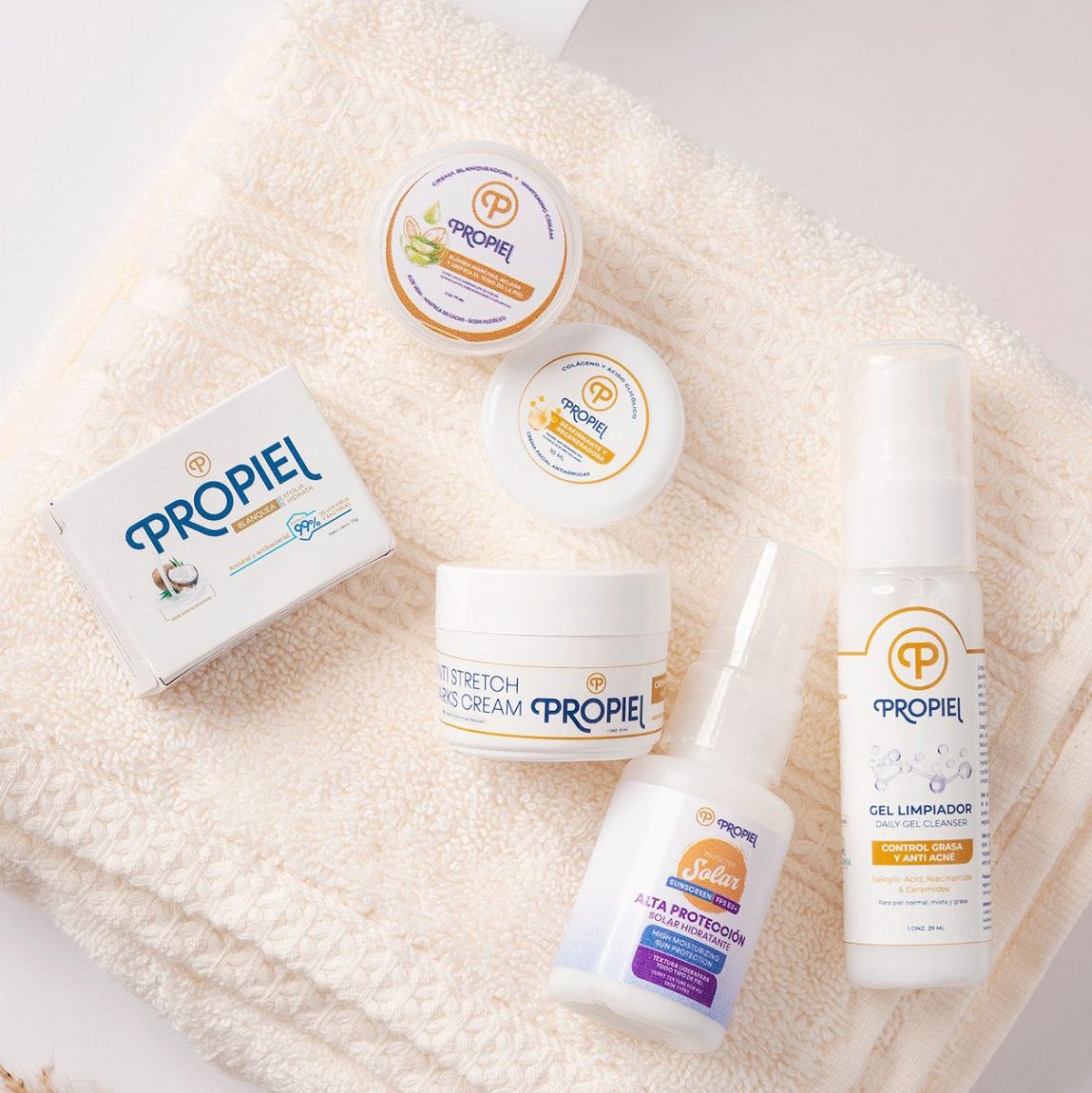 Jabón, Gel Limpiador, Protector Solar, Crema Facial, Crema Blanqueadora, Crema Humectante.